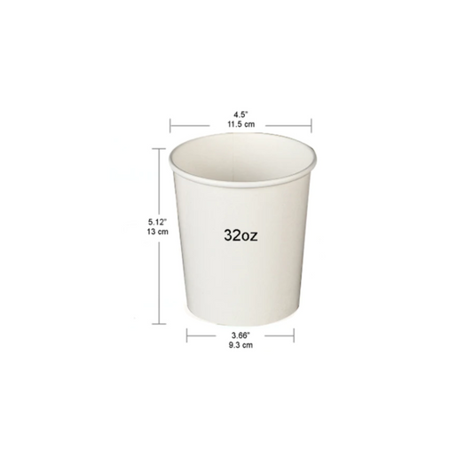 32 Oz Disposable Paper Soup Container | WHITE | Leak-proof | CASE OF 500
